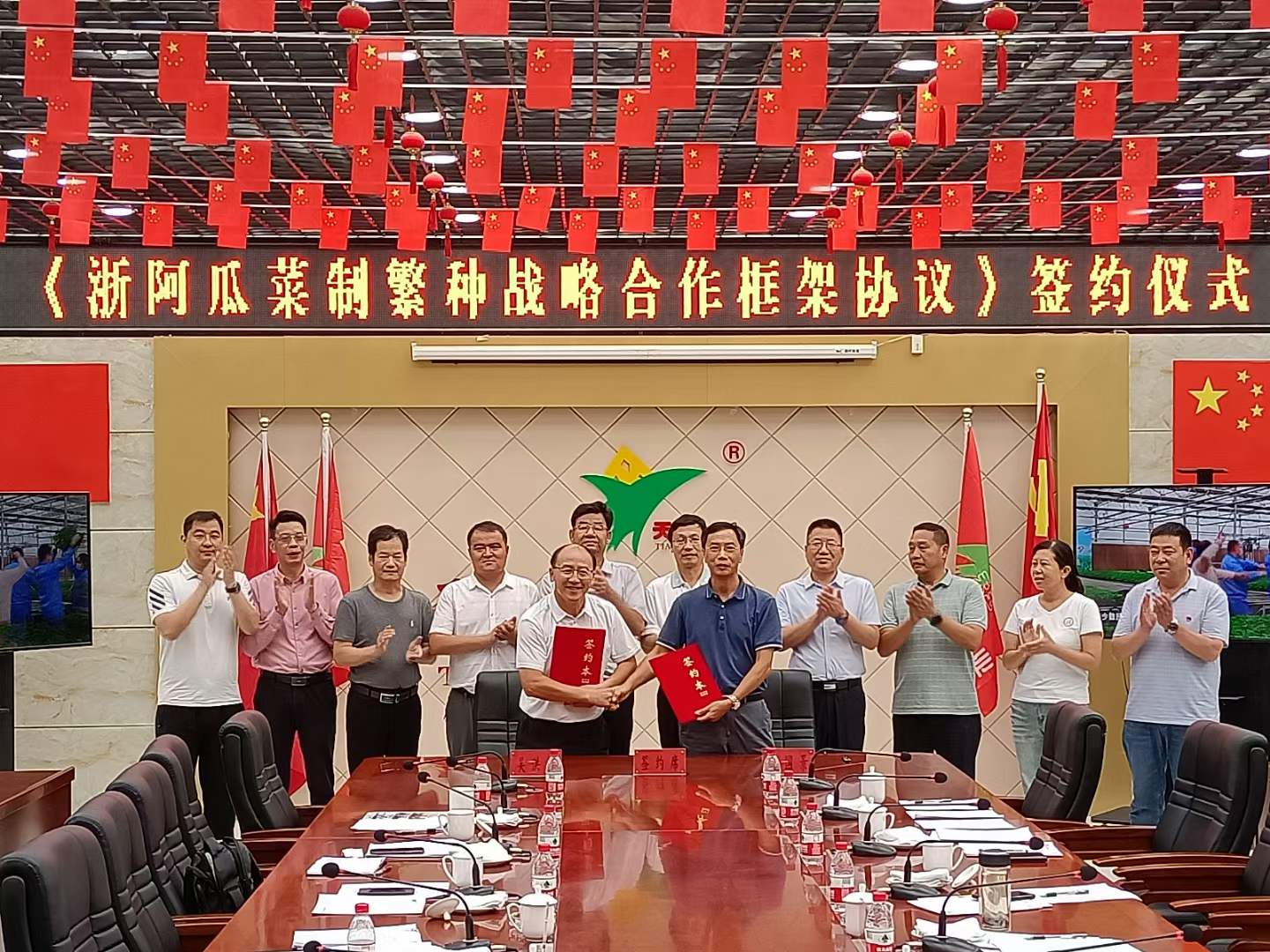 會上,新疆天玉種業有限責任公司與浙江省農業科學院蔬菜研究所簽訂《浙阿瓜菜制繁種戰略合作框架協議》,并掛牌成立浙阿瓜菜制種研發合作中心。
