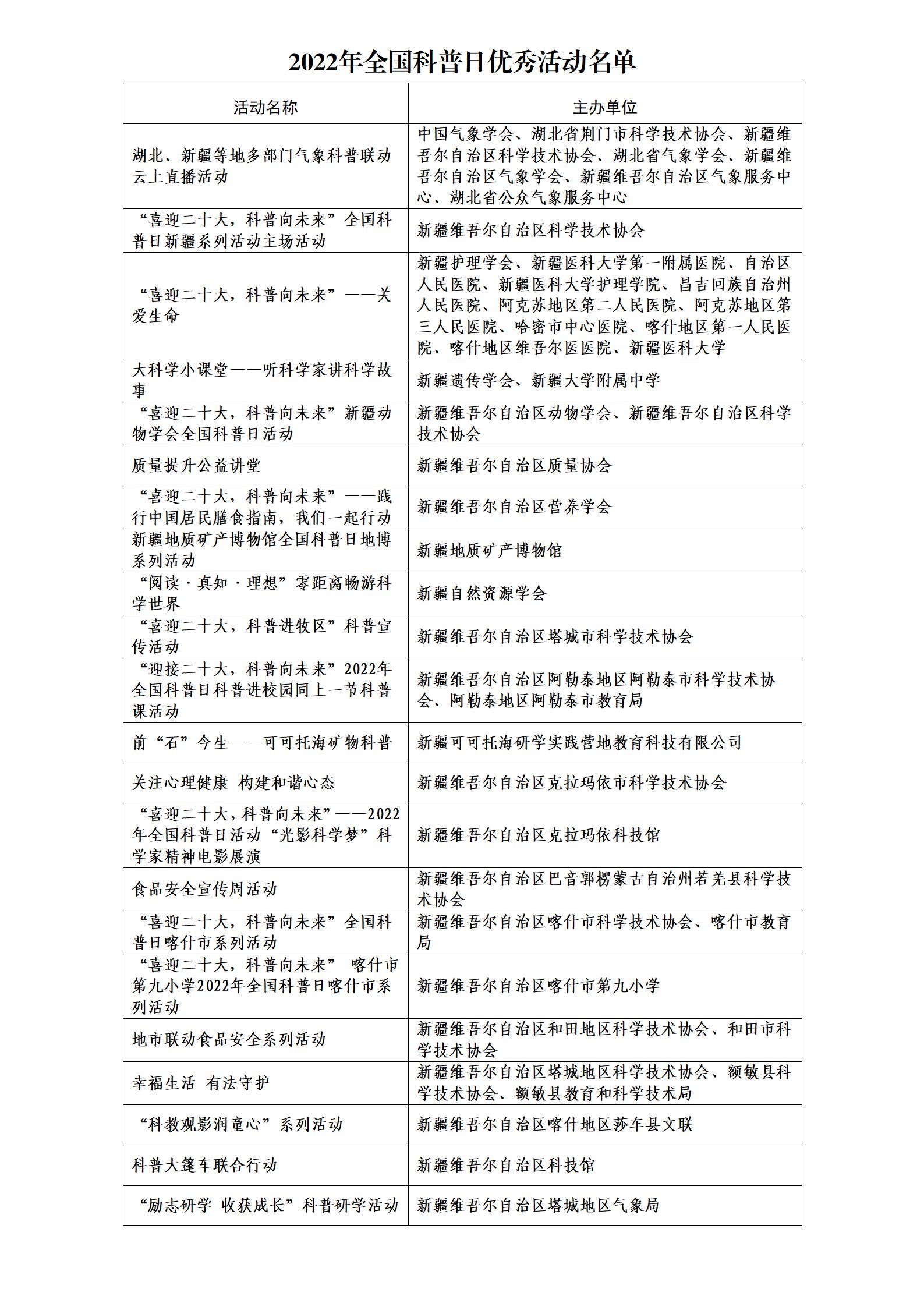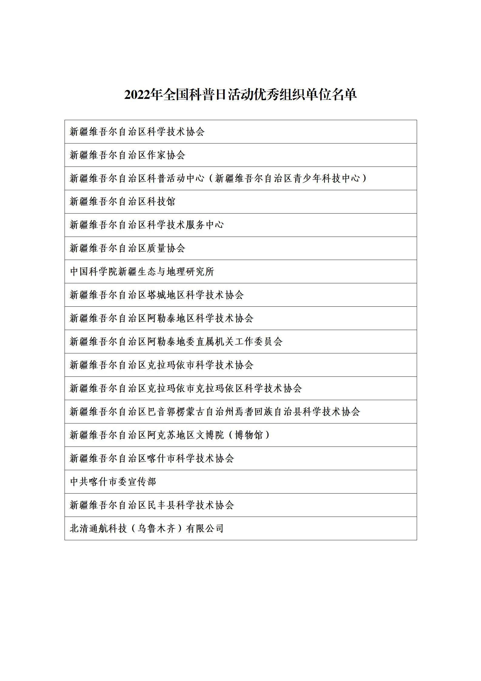 近日,中國科協發布《關于對2022年全國科普日有關組織單位和活動予以表揚的通知》,自治區科協、自治區質量協會、阿勒泰地區科協等18個單位被評為2022年全國科普日優秀組織單位,“全國科普日新疆系列活動主場活動”、“大科學小課堂——聽科學家講科學故事”、“前‘石’今生——可可托海礦物科普”等22個活動被評為2022年全國科普日優秀活動。