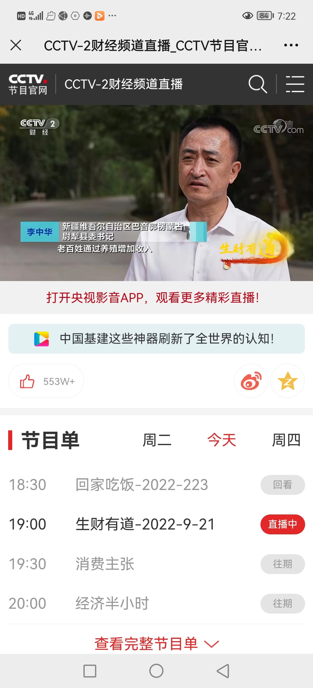 9月21日,尉犁縣廣大群眾正在通過新聞媒體、電視、手機APP觀看央視二套《生財有道》欄目。