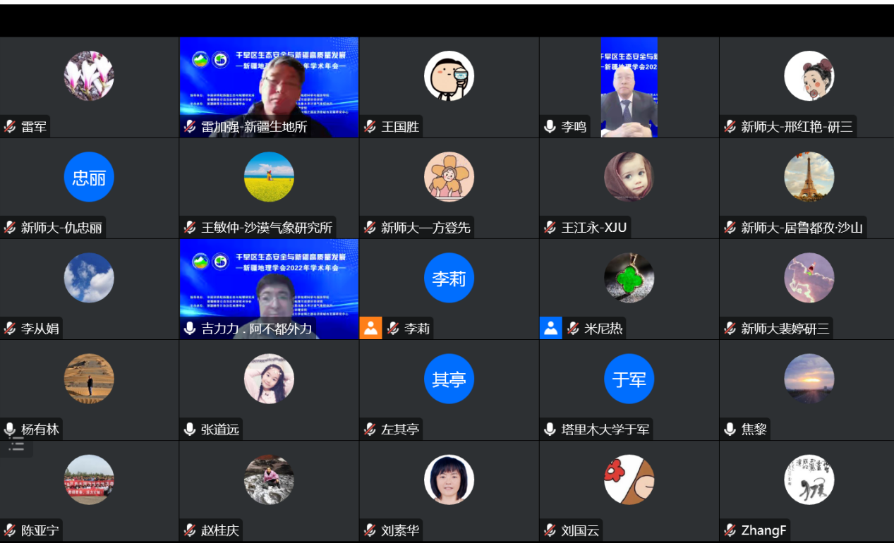 來自中科院新疆生態與地理研究所、新疆大學、新疆師范大學、石河子大學、塔里木大學、新疆農業大學、新疆伊犁師范大學、烏魯木齊市教研中心等單位的近300位學者在線參加會議。