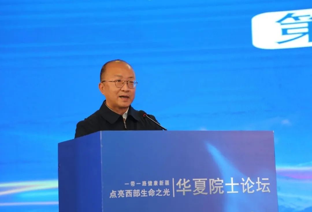 新疆維吾爾自治區科協黨組成員、副主席李鳴致辭。李鳴副主席代表自治區科協對林東昕院士、徐兵河院士、夏強院長和各位專家的到來表示熱烈歡迎和衷心感謝。他指出,長期以來,在韓德民院士的帶領下,中國醫促會踐行“健康中國·一帶一路”區域協調發展戰略,打造了“華夏院士論壇”“華佗工程”品牌活動,充分發揮了聯系醫學科技工作者的橋梁和紐帶作用。作為活動承辦單位之一,新疆科協將全力以赴舉辦好此次活動,服務保障好各位院士專家在疆的考察。今年2月9日,新疆科協與新疆醫科大學簽署戰略合作協議,共同推進“一帶一路”區域醫療服務中心建設,本次舉辦的華夏院士論壇腫瘤學分論壇由新疆醫科大學附屬腫瘤醫院承辦。希望各位院士、專家為新疆醫療健康事業出謀劃策,努力攻關,也希望通過此次活動,進一步加強與各方的溝通合作,在新疆打造常態化的品牌醫學科技活動,攜手推進新時代新疆醫療健康事業的高質量發展。