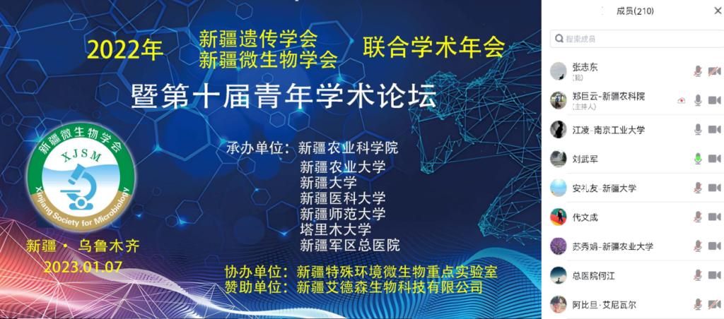 本屆論壇由新疆農業科學院、新疆農業大學、新疆大學、新疆醫科大學、新疆師范大學、塔里木大學、新疆軍區總醫院聯合承辦。新疆微生物學會和新疆遺傳學會各專委會、理事和會員代表200余人以線上形式參會。