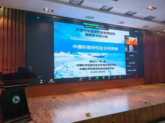 主旨報告環節,比利時皇家科學院、國際制圖協會副會長Philippe De Maeyer院士,新疆自然資源學會理事長包安明研究員、中科院西北生態環境資源研究院車濤研究員和塔吉克斯坦環境委員會Aminjon Gulakhmadov副教授圍繞干旱區地理信息可視化、干旱區自然災害與防災減災、中國積雪特性及分布調查和塔吉克斯坦水平衡模擬等分別作了精彩報告。