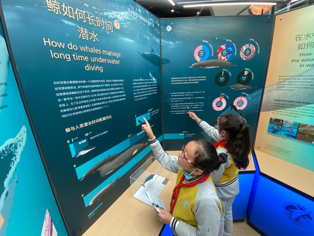 烏魯木齊市第十四小學的100名師生通過參觀“鯨奇世界”主題展覽,參與鯨歌嘹亮、鯨眼看世界、步步鯨心等8項益智闖關游戲,了解并學習鯨魚的種類特點、生活習性等相關科學知識。活動受到師生的一致好評,十四小五年級3班的古麗扎同學說:“我了解到海洋動物的生存環境正逐漸遭到破壞,所以我們更應該積極行動起來,保護海洋生物,維持海洋生態平衡。”
