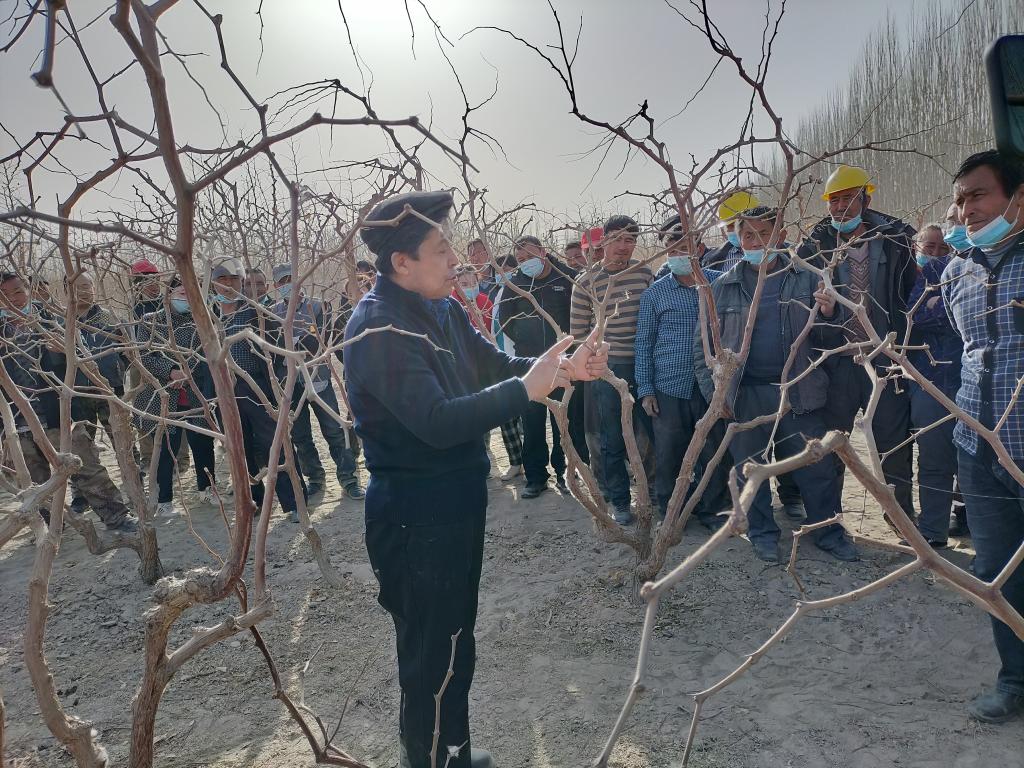 在紅棗種植與管理培訓(xùn)活動(dòng)現(xiàn)場(chǎng),來自新疆農(nóng)科院園藝所的林果種植專家克里木·伊明教授,直接把培訓(xùn)活動(dòng)的現(xiàn)場(chǎng)設(shè)在了紅棗地,在田間地頭給果農(nóng)“傳道授業(yè)解惑”。村民奧斯曼邊認(rèn)真聽講邊拿手機(jī)錄,“感謝教授這么遠(yuǎn)過來給我們講課,教授講得太好了,我要錄下來好好學(xué)習(xí)。”