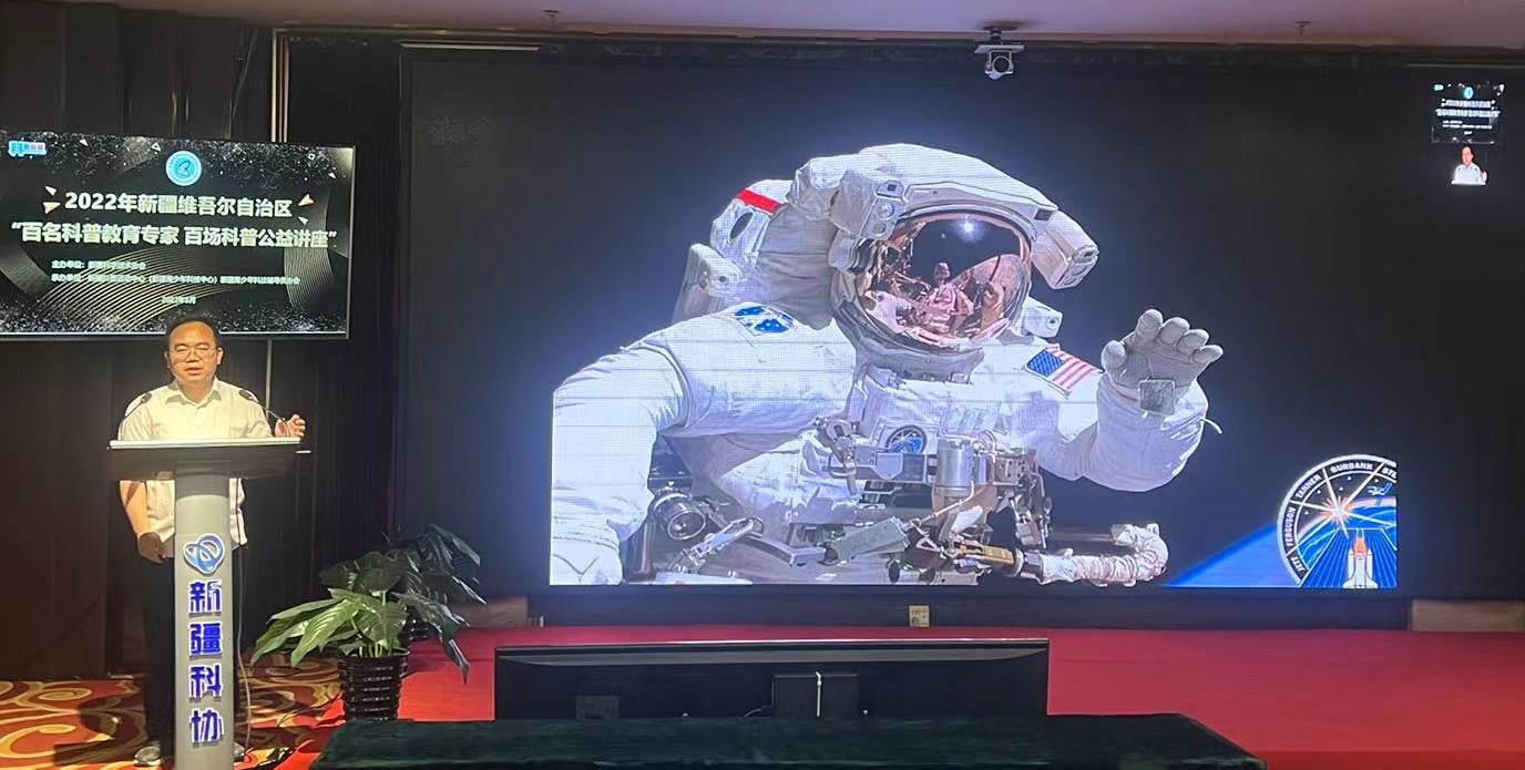 2022年5月18日下午,自治區(qū)科協(xié)舉辦的“百名科普教育專家 百場(chǎng)科普活動(dòng)公益講座”《遨游太陽(yáng)系》在新疆科協(xié)會(huì)堂首場(chǎng)開(kāi)講,新疆青少年科普教育專家、中科院新疆天文臺(tái)天文科普教育中心主任、副研究員宋華剛老師通過(guò)線上直播的方式為全疆青少年學(xué)生提供了科普大餐。本次講座全疆581個(gè)班級(jí)同時(shí)在線觀看,20000余名師生接受科普教育。