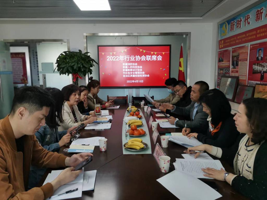 為加強行業協會的業務交流,進一步規范協會內部治理,提升專業化服務水平工作,更好的為國家服務、為會員服務、為社會服務、為行業服務,2022年4月15日上午新疆消防協會、新疆人防科技協會、新疆勘察設計協會、烏魯木齊應急安全管理協會以及上海蘭迪(烏魯木齊)律師事務所12名協會負責同志在新疆質量檢驗檢測協會會議室召開協會聯系會 。