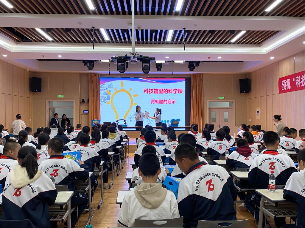 在教室里,中國(guó)科技館左旭東、新疆科技館輔導(dǎo)員同上一堂“科技館里的科學(xué)課”,為210名青少年學(xué)生講解《青蛙腿的啟示》《流水的力量》。授課中青少年學(xué)生積極互動(dòng)、踴躍提問,輔導(dǎo)老師們均熱情回應(yīng)解答。在教室外,豐富多樣的科普大篷車車載展品吸引著到場(chǎng)的青少年學(xué)生,科技輔導(dǎo)員耐心細(xì)致、深入淺出地講解每件展品背后的原理,現(xiàn)場(chǎng)探究談?wù)摎夥諢狒[非凡。青少年學(xué)生紛紛表示,通過實(shí)踐和理論結(jié)合,讓他們對(duì)科學(xué)知識(shí)的理解更深了、對(duì)知識(shí)點(diǎn)記得也更牢了。