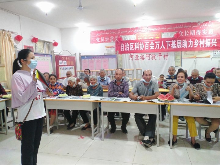 近日,新疆克拉瑪依職業(yè)技術(shù)學(xué)院科學(xué)技術(shù)協(xié)會組成科技專家服務(wù)團(tuán)前往和田地區(qū)皮山縣開展“百會萬人下基層助力鄉(xiāng)村振興”活動,向當(dāng)?shù)厝罕娰浰涂破兆x物,開展科普宣傳,助力鄉(xiāng)村振興。
