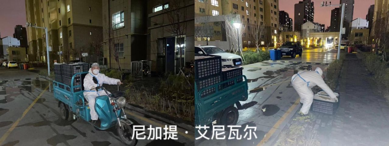 早晨八點,展覽中心開迪麗亞·買買提同志穿著密不透氣的防護服,開啟了三棟樓十五個單元的上門核酸采集工作。下午三點半,為居民配送米、面、油、蔬菜等生活物資。晚上為個別居民做抗原,填寫報備材料。“防疫工作真的非常辛苦,自己經(jīng)歷過之后才知道有多不容易,每天早出晚歸,爬樓梯爬到腿軟,但是能夠得到居民的認可,一切辛苦付出都是值得的。”開迪麗亞·買買提說道。