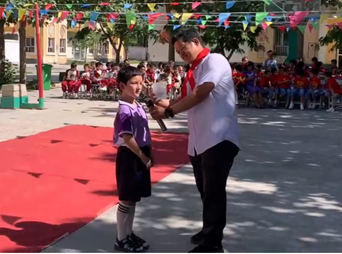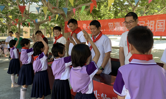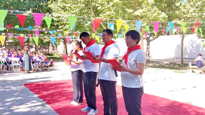 清晨,金色的陽光灑滿校園,孩子們佩戴著鮮艷的紅領巾,身著多采的節日禮服,整齊地站在操場上。在嘹亮的國歌聲中,孩子們肅立致敬,表達著對祖國的無限熱愛?;顒娱_始,學校領導發表了簡短而有力的講話,強調了"六一"兒童節的意義,并鼓勵孩子們要珍惜時光,努力學習,將來成為國家的棟梁之材。隨后,孩子們手捧鮮艷的紅領巾,走向參加活動的學會領導、駐村工作隊和村兩委成員,親手為大家佩戴上紅領巾,并向他們敬上少先隊隊禮,表達了學生們對來賓的尊敬,傳承弘揚著少先隊紅色精神。