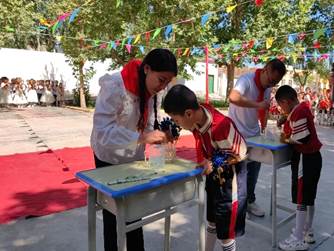 夏日溫暖的陽光,正如全國科技周活動如火如荼,伴隨著孩子們的歡聲笑語,迎來了一年一度的國際“六一”兒童節。在這個特別的日子里,新疆微生物學會聯合疏勒縣庫木西力克鄉15村駐村工作、村兩委來到村小學,舉辦了以“童心向黨 用青春書寫祖國的未來”為主題的科普進校園歡度兒童節活動,通過豐富多彩、寓教于樂的慶?;顒?,孩子們不僅感受到節日的快樂,也激發了孩子們的愛祖國、愛科學的熱情,增強了中華民族自豪感。