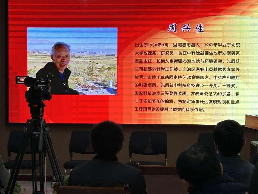 11月30日,新疆地理學會依托自治區(qū)科協(xié)重點資助項目,與新疆地理學會黨支部、國家荒漠-綠洲生態(tài)建設工程技術研究中心黨支部、新疆植物學會黨支部、新疆土壤與肥料學會黨支部聯(lián)合開展支部共建,在中國科學院新疆生態(tài)與地理研究所實驗樓一樓會議室舉辦了“科技興疆偉業(yè)中優(yōu)秀地理科學家精神譜系挖掘梳理與宣傳活動”。活動采取節(jié)目訪談形式,邀請了周興佳、潘伯榮、閻順、趙興有等四位老科學家嘉賓,現(xiàn)場向青年科技工作者講述了他們科技戍邊、艱苦探索、矢志不渝的精彩故事,并與現(xiàn)場31名青年科技工作者進行問答互動。活動由中國科學院新疆生態(tài)與地理研究所黨委委員、國家荒漠-綠洲生態(tài)建設工程技術研究中心黨支部書記、新疆地理學會黨支部組織委員李生宇正高級工程師主持。
