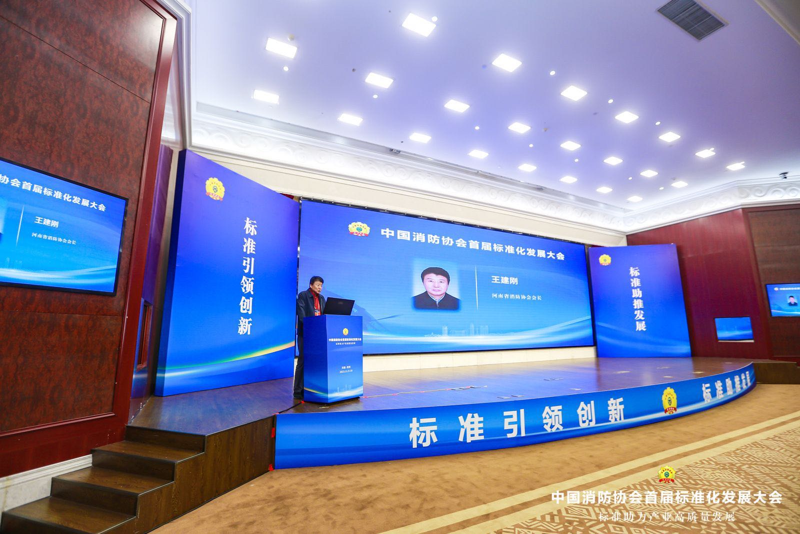 由中國消防協會主辦,河南省消防協會承辦的“首屆消防標準化發展大會”于2023年11月9日-10日在河南省鄭州市紫荊山賓館召開,大會采取政策宣講、主旨演講、展覽展示、標準宣貫、頒證儀式、互動交流、團體標準需求調研座談等形式召開。中國消防協會副會長李引擎、馬維光以及國家市場監督管理總局標準創新司、中國標準化研究院、應急管理部上海消防研究所、應急管理部天津消防研究所、應急管理部四川消防研究所、應急管理部沈陽消防研究所、應急管理部消防產品合格評定中心、北京科技大學、中國警察大學和全國各地省級消防協會領導出席大會。新疆消防協會會長張照雄、秘書長閆懷宣及會員企業代表等參加大會。