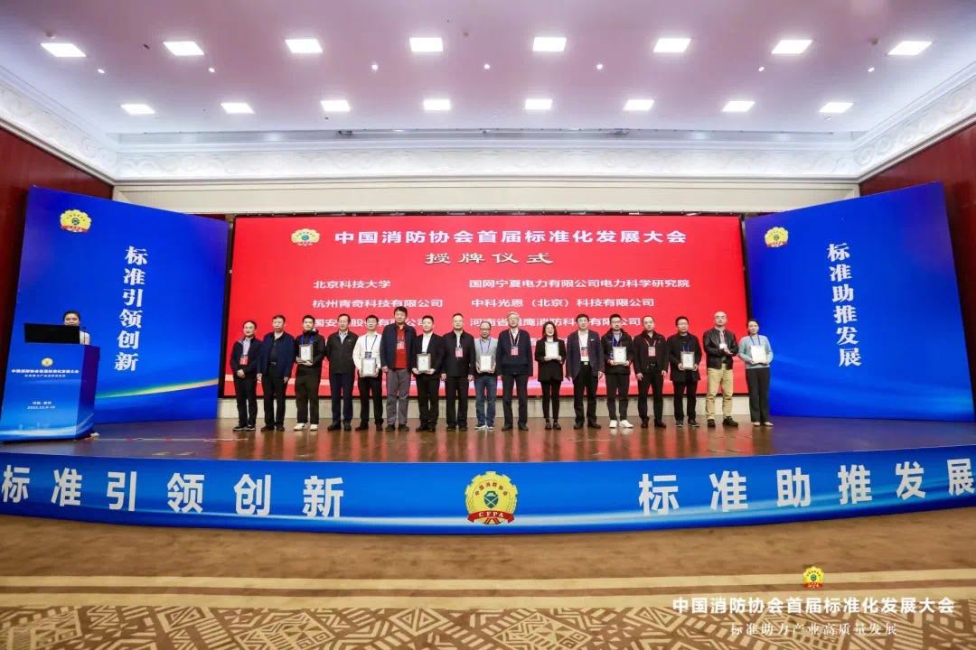 會上,北京科技大學、鄭州輕工大學、北京航天常興科技發展股份有限公司、沈陽美寶控制有限公司、中聯重科股份有限公司、河南獵鷹消防科技有限公司等167家高等院校學術團體和消防企業,獲頒中國消防協會消防團體標準主編單位、參編單位證書,353名專家和科研人員獲頒主要起草人證書。