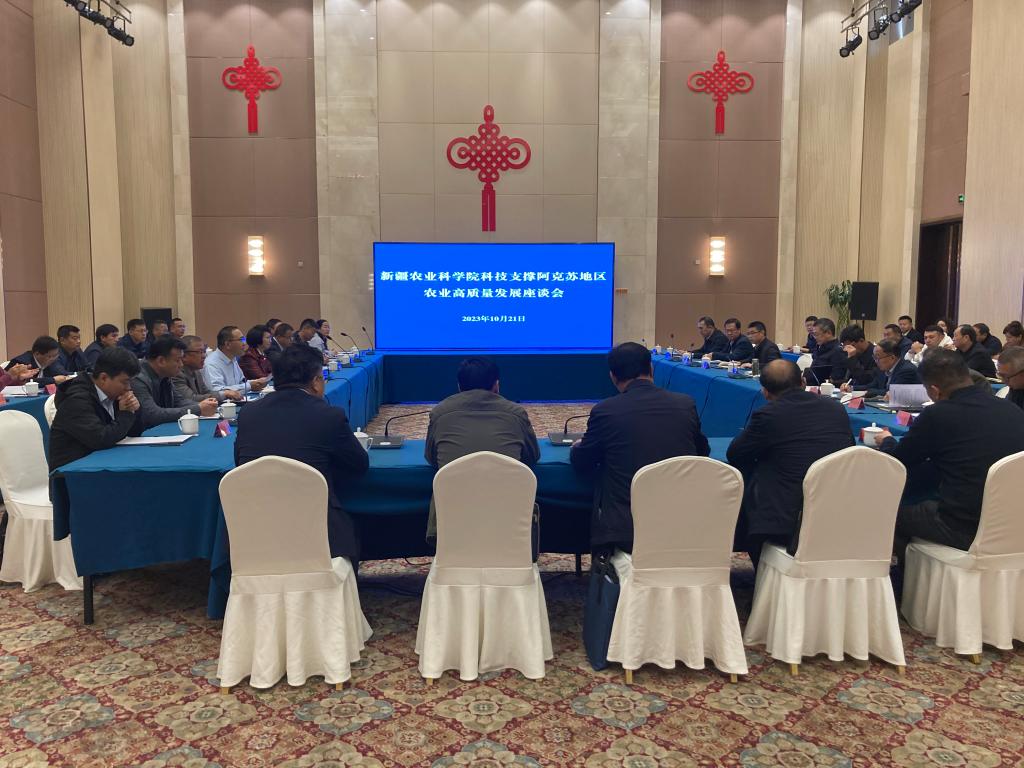 期間,根據(jù)當(dāng)?shù)靥岢龅漠a(chǎn)業(yè)問題及技術(shù)難點(diǎn),專家及當(dāng)?shù)仡I(lǐng)導(dǎo)兩次召開“科技支撐阿克蘇地區(qū)農(nóng)業(yè)高質(zhì)量發(fā)展”研討會(huì),新疆農(nóng)科院經(jīng)作所所長阿里甫·艾爾西、農(nóng)機(jī)化所副所長楊麗玲、園藝所研究員王繼勛以及各所研究團(tuán)隊(duì),結(jié)合各自專業(yè)領(lǐng)域,圍繞“凝練科學(xué)問題、解決產(chǎn)業(yè)瓶頸,促進(jìn)地區(qū)農(nóng)業(yè)產(chǎn)業(yè)高質(zhì)量發(fā)展”作交流發(fā)言。阿克蘇地區(qū)領(lǐng)導(dǎo)、相關(guān)部門負(fù)責(zé)人及企業(yè)家代表等50余人聚焦促進(jìn)阿克蘇地區(qū)農(nóng)業(yè)產(chǎn)業(yè)高質(zhì)量發(fā)展主題,找問題、提需求、謀對(duì)策,提出加強(qiáng)院地、院企在科技創(chuàng)新、人才培育、成果轉(zhuǎn)化等方面的合作路徑,并達(dá)成多項(xiàng)共識(shí)。