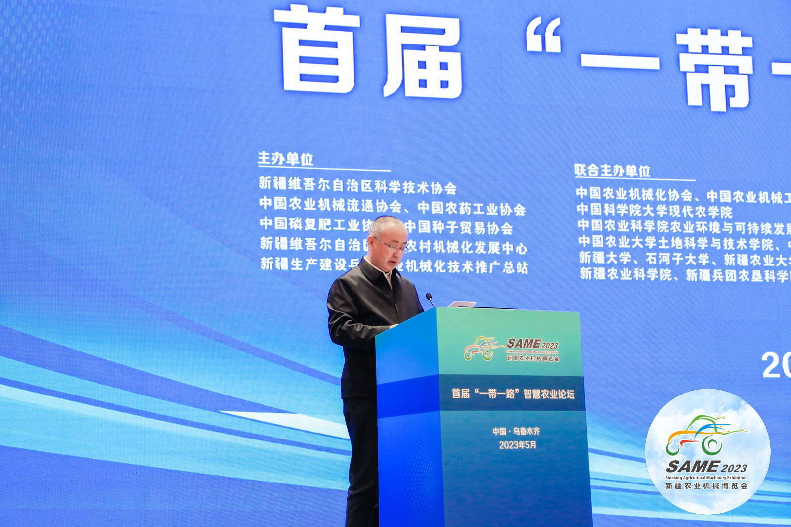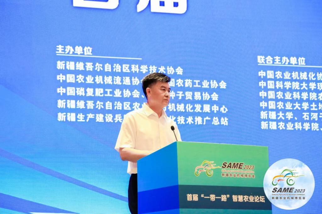 5月26日,首屆“一帶一路”智慧農業論壇在烏魯木齊市新疆國際會展中心召開。本論壇由自治區科協、中國農業機械流通協會、自治區農業農村機械化發展中心等單位主辦,新疆農業機械學會、新疆維吾爾自治區農牧業機械化技術推廣總站、新疆國際會展有限公司等單位承辦。自治區農業農村廳黨組成員、副廳長李晶,自治區科協黨組成員、副主席擺曉宏,中國農業機械流通協會副會長、秘書長陳濤出席論壇并致辭,自治區農業農村機械化發展中心黨委書記、副主任、一級巡視員謝國政主持論壇開幕環節。