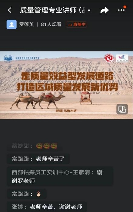 為培育造就德才兼備的高素質質量管理人才隊伍,根據新疆質量管理人才培育“雨露”計劃工作安排。11月11日,新疆質量協會舉辦了質量管理專業講師(品管講師)線上公益培訓。熱愛質量事業、有意參加第七屆質量管理專業講師交流的企業代表65人參加活動。