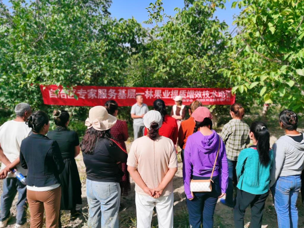 新疆林學(xué)會(huì)致力于進(jìn)一步強(qiáng)化學(xué)會(huì)建設(shè),發(fā)揮學(xué)會(huì)的群眾組織力、持續(xù)發(fā)展力和社會(huì)影響力,提供良好的公共服務(wù)。根據(jù)學(xué)會(huì)的業(yè)務(wù)專(zhuān)長(zhǎng),9月16日,新疆林學(xué)會(huì)派出了以新疆維吾爾自治區(qū)林業(yè)技術(shù)推廣總站為主體的科普小組,前往阿克蘇地區(qū)烏什縣奧特貝希鄉(xiāng)開(kāi)展林果栽培技術(shù)科普宣講活動(dòng)。