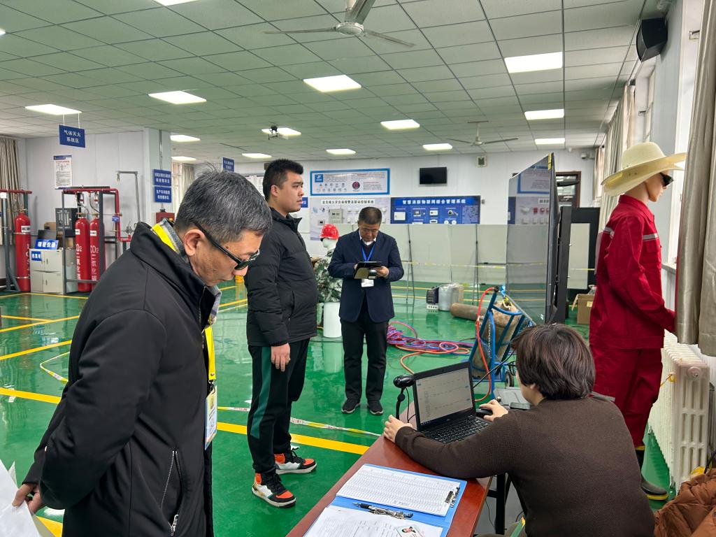 中國消防協會質量督導員、高級工程師林森全程督導此次消防安全管理員職業技能認定(新疆烏魯木齊)站的認定考試工作,新疆消防協會黨支部書記、秘書長閆懷宣全程陪同。在認定考評前,新疆認定站負責人劉威向林森督導員匯報了新疆認定站第三期認定組織方案、認定場地、考位設置、設施設備器材、考評考務人員安排、網絡配置等情況,林森督導員就認定工作進行了實地督導檢查。在認定考試過程中,對理論機考和4個實操考位的認定過程、設施設備及安全措施進行了巡考檢查,現場詢問考評員考務管理、打分規則和科目設置等情況。