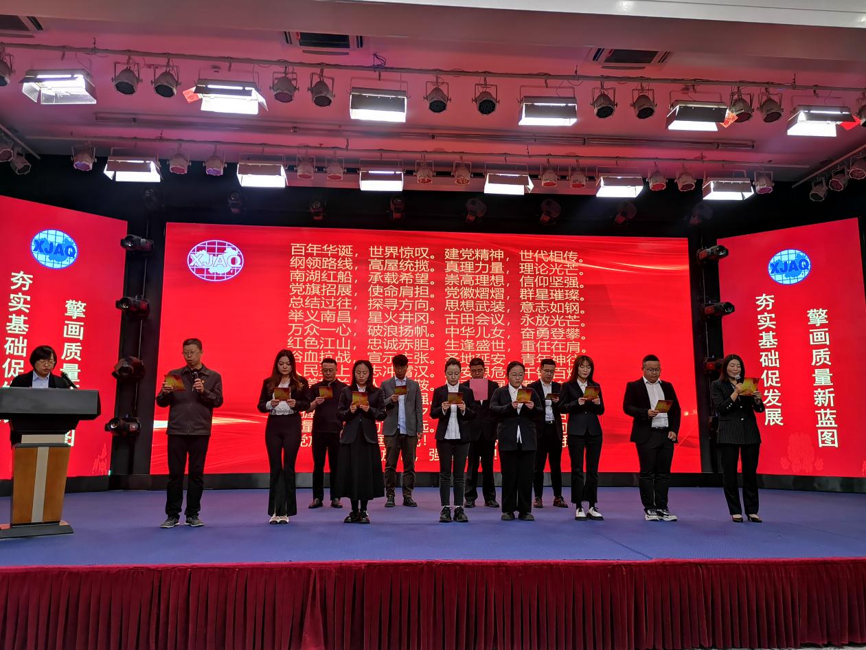 在開班儀式上,國網烏供電公司檢修先鋒QC小組代表了分享他們持續改進的故事;隨后2位質量專家分別以《走進QC,成就自我》、《不出成果的崗位》為主題做了專題分享,講述他們立足平凡崗位的成長歷程,并通過學習應用質量管理實現自我提升、團隊進步、職業發展等。最后,提高班全體班委成員上臺共同宣讀《質量人的強國宣言》,新疆質量協會領導和專家為班委成員授班旗。