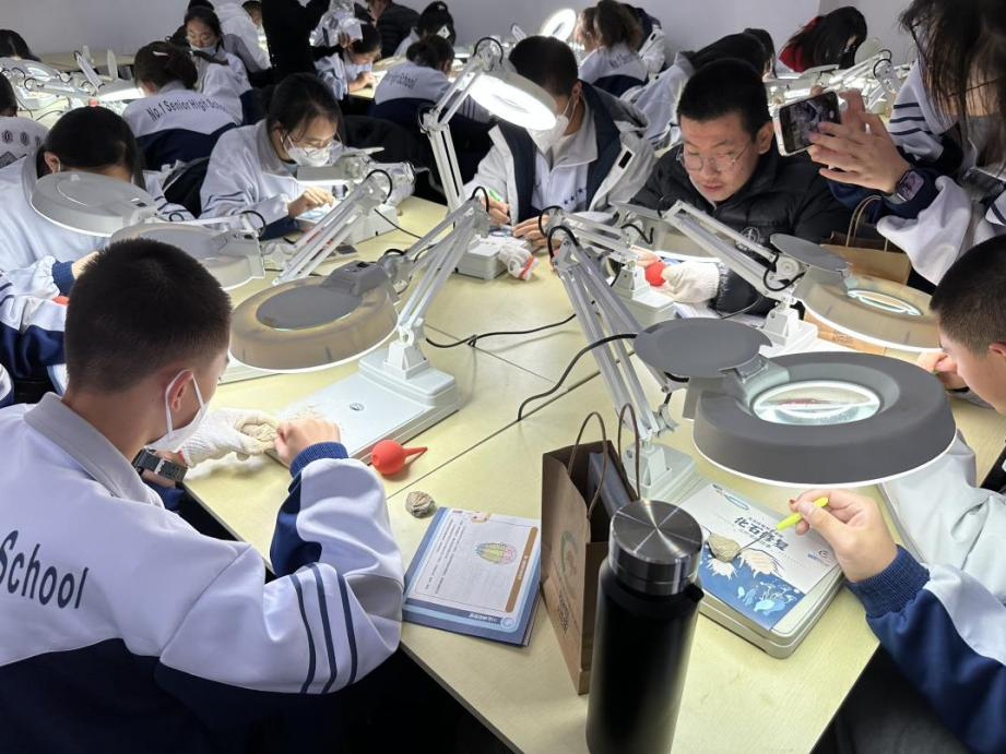 本次實踐活動的最后一環(huán)節(jié)由博物館科普老師于源博、韓雪怡、黃婷婷為學(xué)生們開展《遠古的寶藏-化石》科普課程,圍繞古生物“恐龍”“昆蟲”“魚類”“古生物”四個主題,通過實地觀察、動手動腦,讓學(xué)生們在實踐中進一步認(rèn)識和了解這些古生物的形態(tài)特征,提高他們對自然、社會的認(rèn)識,激發(fā)他們探索自然奧秘的興趣。同學(xué)們通過小組合作學(xué)習(xí),對化石和古生物知識有了更深刻的認(rèn)識。他們不僅了解了化石和古生物知識,還進一步培養(yǎng)了他們合作學(xué)習(xí)和團隊協(xié)作精神。在本次參觀學(xué)習(xí)中,同學(xué)們充分發(fā)揮自己的想象力、動手能力、合作精神以及對化石、古生物知識的探究精神。通過實踐活動,同學(xué)們對古生物有了更深的了解,學(xué)到了很多知識,懂得了許多道理。