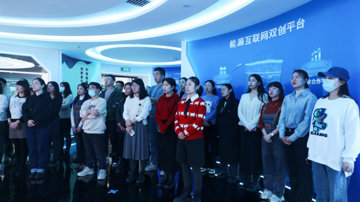 參觀電網科技成果環節,學生們前往新疆電力能源互聯網雙創示范中心,在講解員的帶領下參觀展廳,先后了解電網數字化、創新成果及新型電力系統建設等內容。