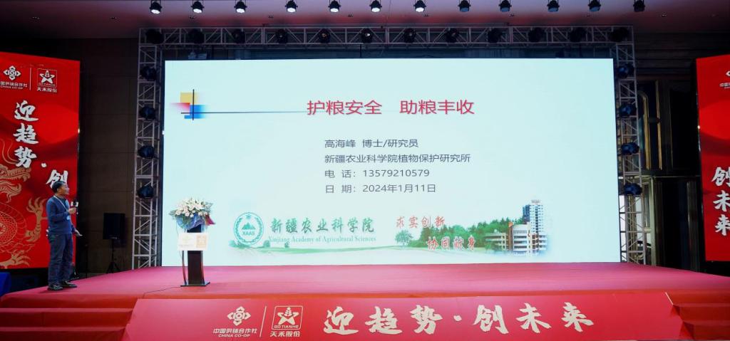 2024年1月11日,新疆植物保護(hù)學(xué)會(huì)組織新疆農(nóng)業(yè)科學(xué)院植物保護(hù)研究所糧食作物病蟲害防控研究室主任高海峰研究員在烏魯木齊市對(duì)各地州農(nóng)藥經(jīng)營(yíng)企業(yè)及種植大戶開展了“護(hù)糧安全 助糧豐收”為主題的技術(shù)培訓(xùn)工作。