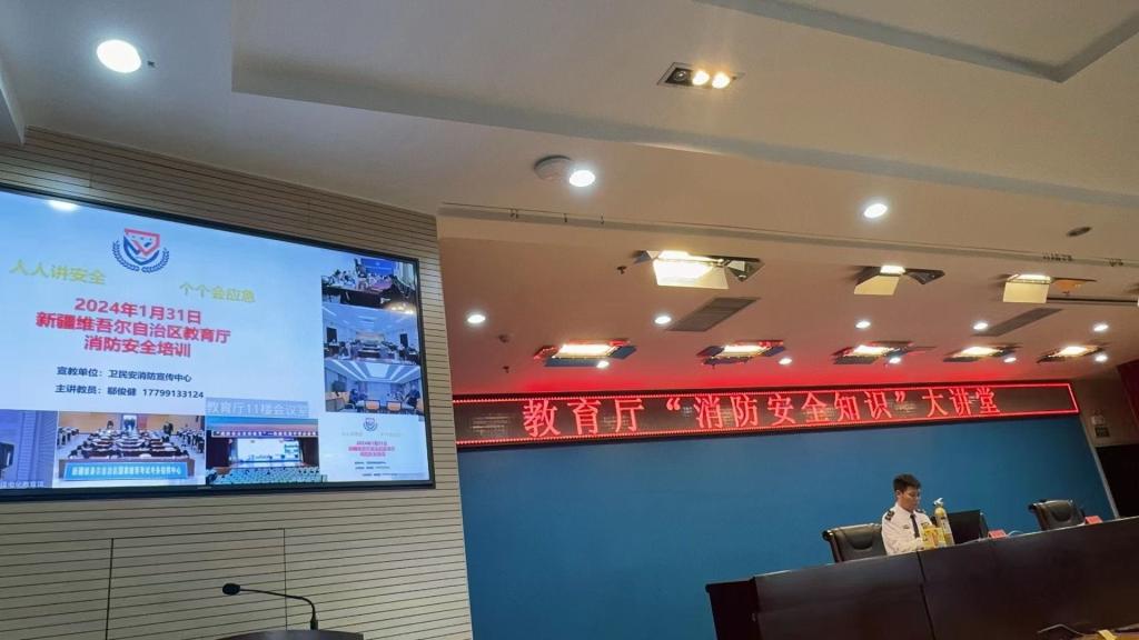 2月1日,自治區教育廳邀請新疆消防協會科普宣傳員郗俊健,開展了“兩專項一培訓”冬防重點工作集中行動暨針對學校發現的消防問題,在全廳及直屬機關人員采取線下及線上方式開展了“初期火情處置和消防設施使用、隱患排查、實戰演練等基礎消防知識培訓”。