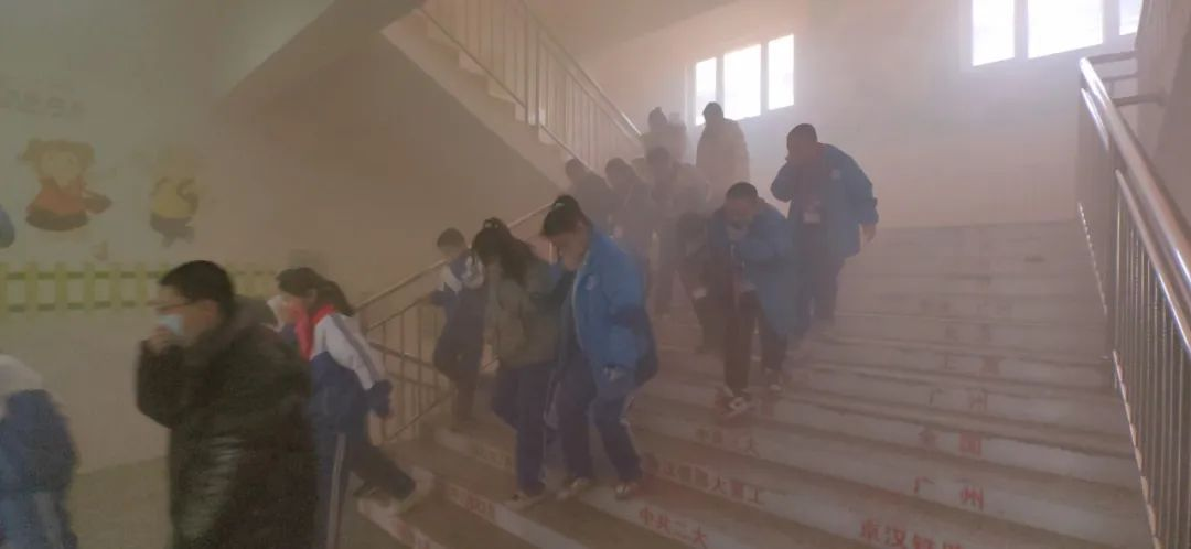 精彩的室內消防安全教育課后,隨著急促的警笛聲,校園火災疏散逃生演練開始了。同學們在老師和消防員的引導下,捂住口鼻,彎著腰,按指定路線采取正確的措施迅速跑出教學樓,進一步提高了遇到火災時的應變能力和實際操作技能。
