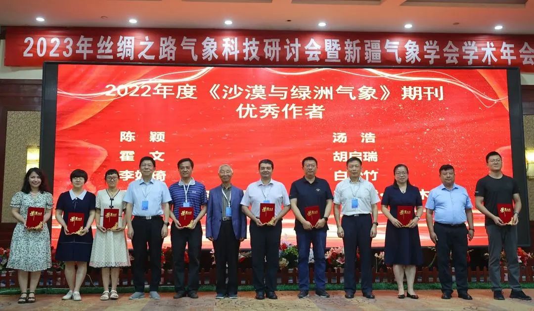 會議還為全國氣象科普教育基地——博爾塔拉蒙古自治州氣象局、塔什庫爾干塔吉克自治縣氣象局授牌,為榮獲2022年度《沙漠與綠洲氣象》優秀作者頒發證書。