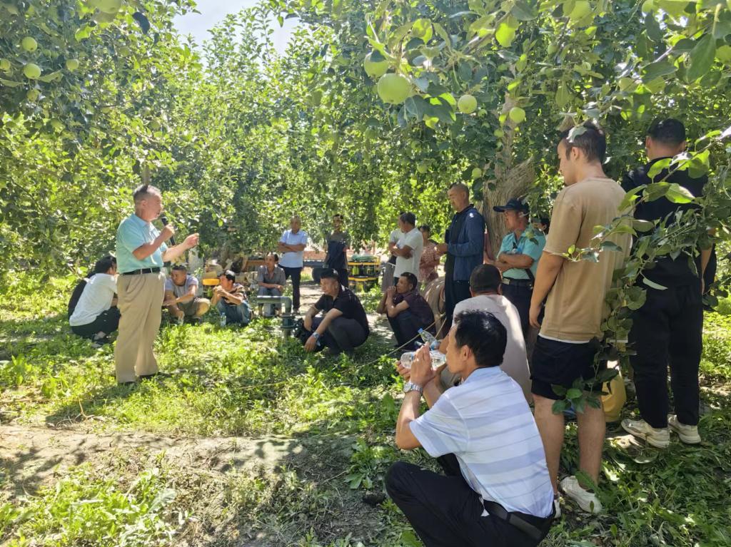 7月19日,阿克蘇地區老科協聯合阿克蘇市老科協在阿克蘇金葉樂豐農業科技有限公司科普示范基地舉辦貫徹落實新修訂的《新疆維吾爾自治區科學技術協會條例》暨抗氧化蘋果科學技術培訓交流會。來自阿克蘇市、溫宿縣、紅旗坡的80余名果農參加了培訓會。