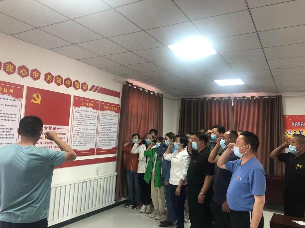 三是重溫一次入黨誓詞。全體黨員面向黨旗重溫入黨誓詞,用鏗鏘有力的誓言表達出內心堅定的理想信念,在現場繳納2022年5月份黨費,履行黨員義務,并紛紛表示在今后工作中要永葆初心使命、踐行入黨誓詞,以實際行動恪守對黨的承諾,立足本職、創新爭優。