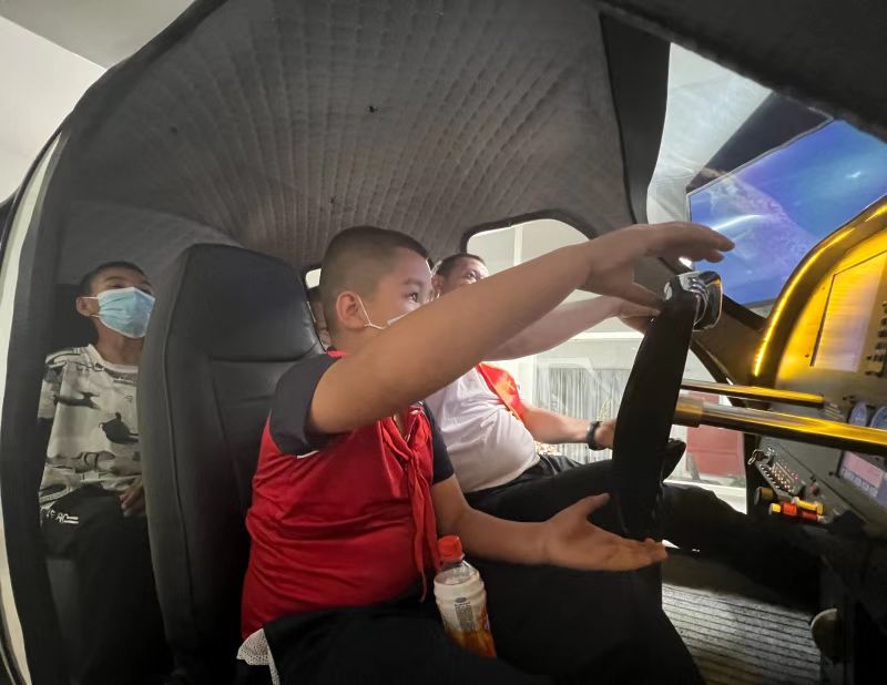 當(dāng)天,孩子們參觀了科技館內(nèi)的球幕影院、科普眼科義診、無人機、機器人展示地球密碼、科技之光、人體密碼、運動體驗區(qū)、知識講堂、計算機功能室和流動科技館等七個展區(qū),還操作飛機動感模擬飛行等科普互動,親身體驗了科技的魅力。