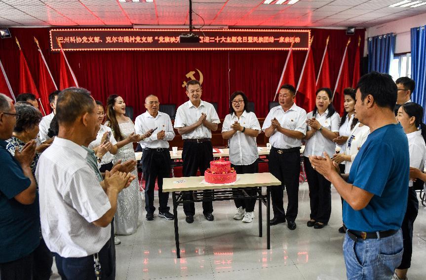 7月1日,巴州科協黨支部、克爾古提村黨支部在和靜縣克爾古提鄉克爾古提村開展主題為“共慶七一喜迎二十大”黨旗映天山主題黨日暨民族團結一家親活動。州科協全體黨員干部、州科協退休干部、訪惠聚全體人員、克爾古提村村委會黨員干部以及結對親戚50余人參加本次活動。