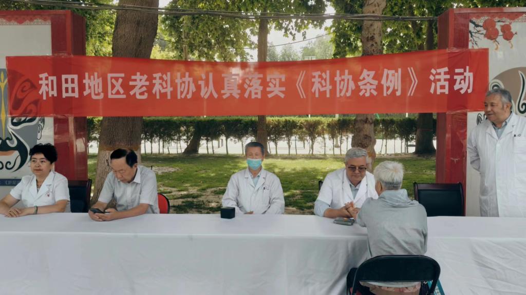 7月9日上午,和田地區科協老年科技工作者協會組織和田地區人民醫院、和田地區維吾爾醫院醫務專家會員在和田市團結廣場開展《新疆維吾爾自治區科學技術協會條例》宣傳暨衛健科普和專家義診活動。
