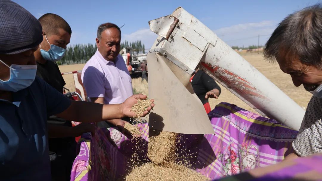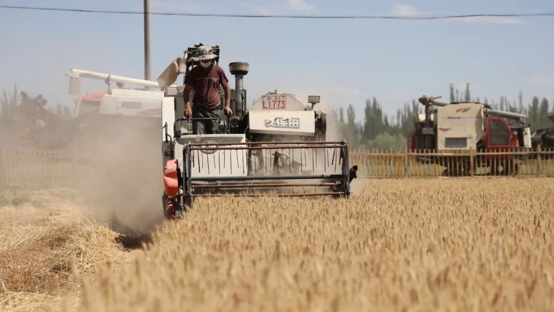 5月30日,葉城縣小麥收割在江格勒斯鄉夏勒迪壤村開鐮,標志著葉城縣2022年“三夏”小麥搶收工作全面開始。