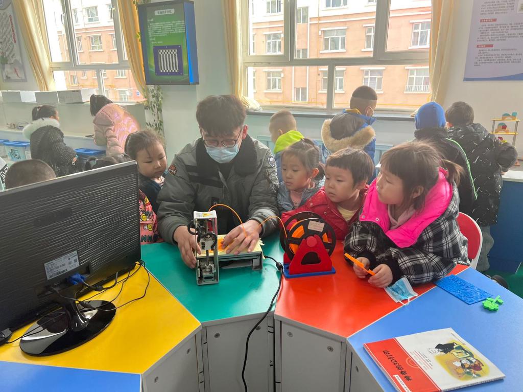 孩子們依次體驗了3D打印機、三球儀、機器人、凹凸成像、建筑結構抗震演示裝置等科普展品,享受科技帶來的樂趣。在這里,孩子們的好奇心和探索欲得到了最大程度地釋放。
