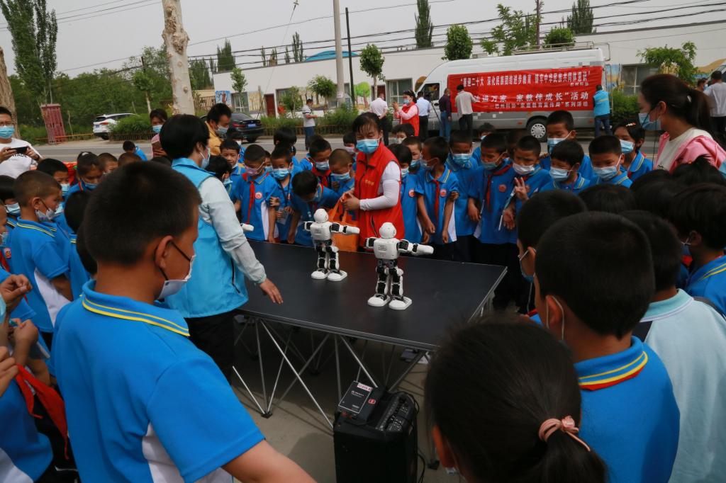 本次科普宣傳活動通過懸掛橫幅標語、擺放3D動漫科普展板、互動科普展教具等科普宣傳活動。科技工作者向廣大農牧民群眾講解防災減災、疫情防控、羊養殖實用技術及生活安全科普知識、反邪教、食品藥品安全常識,并同時學生們跟著會跳舞的機器人一起跳舞,零距離接觸多種形式的30余件科普展品,體驗科技讓學生們新奇萬分,收益菲淺。