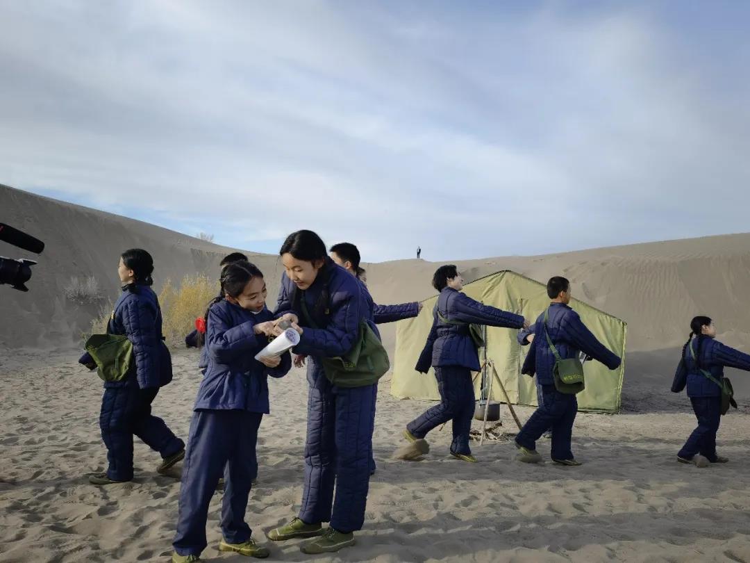 近一個(gè)月的排練時(shí)間,傾注了所有主創(chuàng)人員和小演員們的心血,大家穿越時(shí)空親身感受老一輩石油人的艱辛。井架、冰人、年代棉服、膠皮鞋、沙漠……處處展現(xiàn)了克拉瑪依油田開發(fā)初期的歷史場景,這些立體生動(dòng)的場景讓師生們仿佛重新回到了那段60年前的舊時(shí)光。油田開發(fā)初期,條件艱苦,所有建設(shè)完全靠人抬靠肩扛,老一輩石油人不怕苦不怕累,電影中最后一個(gè)場景是隊(duì)長用身體堵住噴發(fā)的石油,感受到了石油人天不怕地不怕的犧牲精神,孩子們都表示要將石油精神代代傳承。