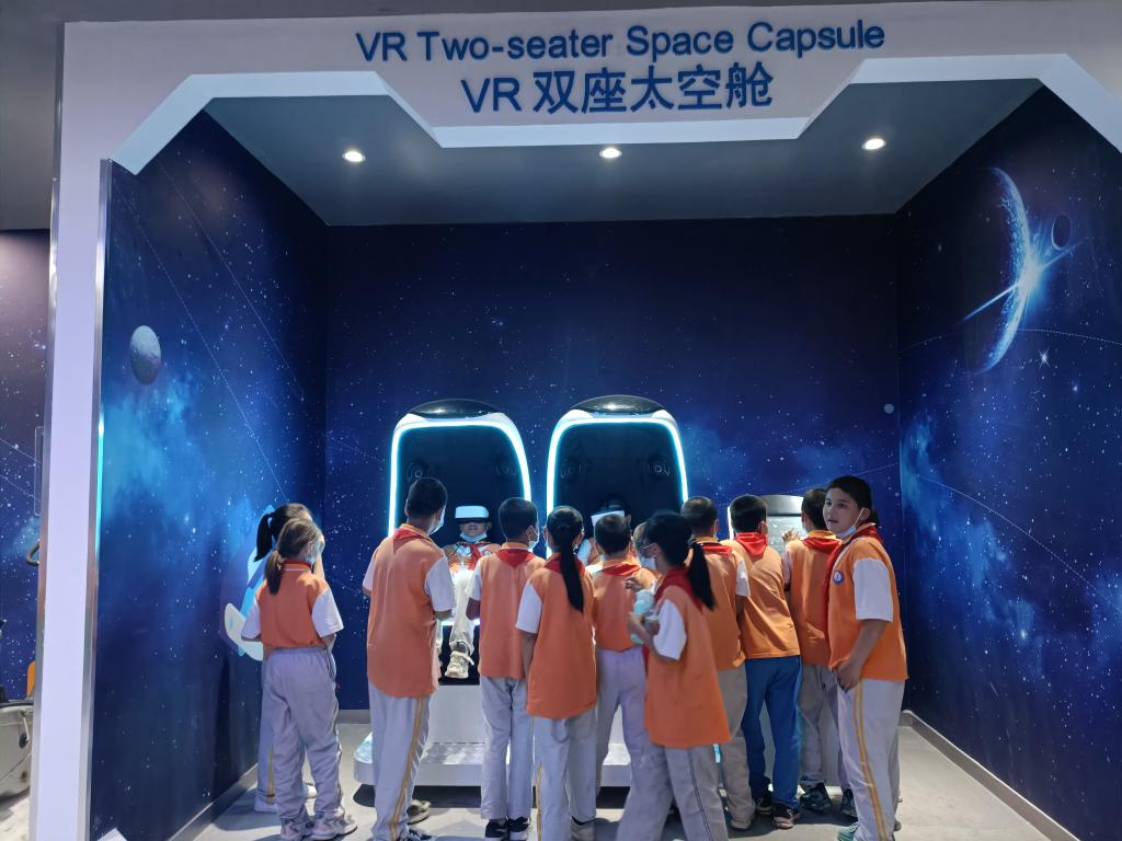一進科技館,同學們便被眼前琳瑯滿目的科技展品所吸引。有聲光體驗、力學之奧、電磁之舞、煙花之彩、智慧交通、VR等展品,這些新奇的展品集科學性、知識性、趣味性、體驗性于一體,以感受科技,探索未來為主線,尤其注重青少年與各展項之間的交互體驗,生動地反映經典科學原理及技術應用,也展示未來科技發展方向。