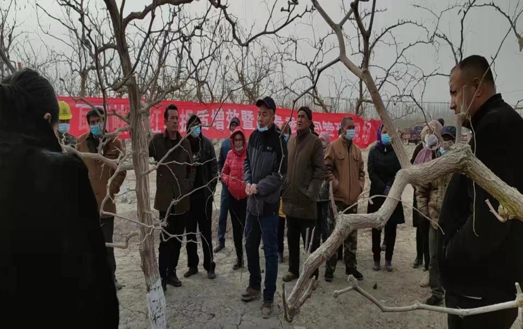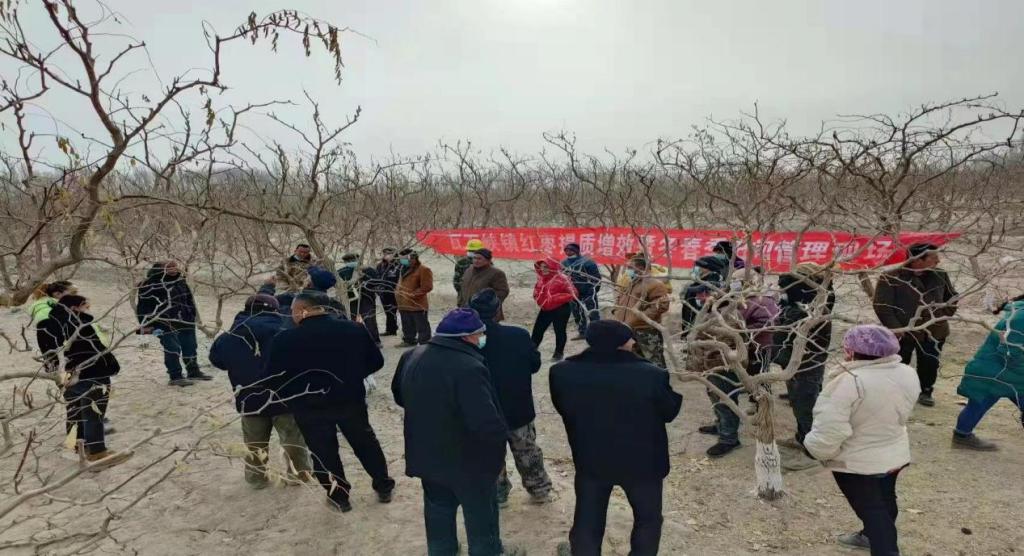 為解決棗農(nóng)棗園管理問題,在瓦石峽鎮(zhèn)的紅棗地里,紅棗土專家現(xiàn)場給村民講解紅棗春季管理、棗樹春季修剪、間移間伐、整形修剪、施肥、防病蟲等田間管理實用技術(shù)進(jìn)行現(xiàn)場實操培訓(xùn),為切實做好棗樹春耕春種管理工作打下堅實的基礎(chǔ)。