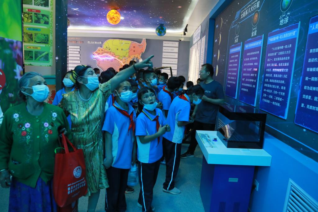 活動現場秩序井然,同學們歡聲笑語不斷,有的同學興致勃勃排著長隊等待觀看,有的擺弄展具,有的細心觀看科普實驗。鄉村科普館滿足了他們對先進科學知識學習、了解的愿望,讓參加活動的師生真切地感受到了科技的無窮魅力。