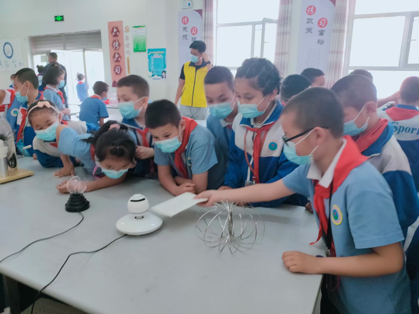 活動展出了“VR”技術“重力測試”“色彩的奧秘”等科品,科普志愿者為巴楚縣新城小學300名師生仔細講解了每項展品的科學原理,并現場表演科學實驗,引導他們把課堂學到的知識與現實生活結合起來,在動手操作的過程中感受科學的魅力。
