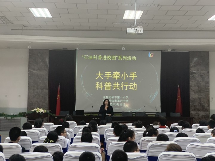3月15日下午,克拉瑪依市第一小學五級部全體師生在克拉瑪依區科協以及第六中學師生的大力支持下,開展了“石油科普進校園”系列實踐活動——石油知識綜合實踐活動課程經驗介紹主題講座。
