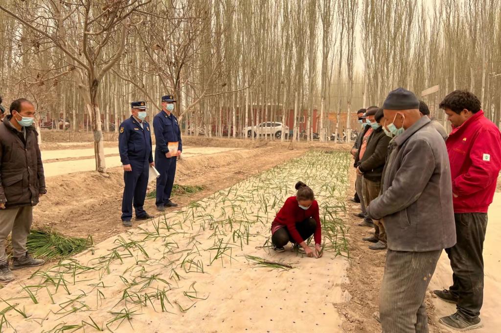 在依提木孔鎮托萬庫其村,消防人員走進田間地頭,圍繞春季大風天氣消防安全、防火滅火知識、用火用電注意事項等消防安全科普常識為群眾作了重點講解,并提醒廣大群眾在生產生活中要注意用火用電安全,不私拉亂接電線,合理收納生活雜物,定期檢修電氣線路,確保及時發現并消除身邊存在的各類火災隱患。