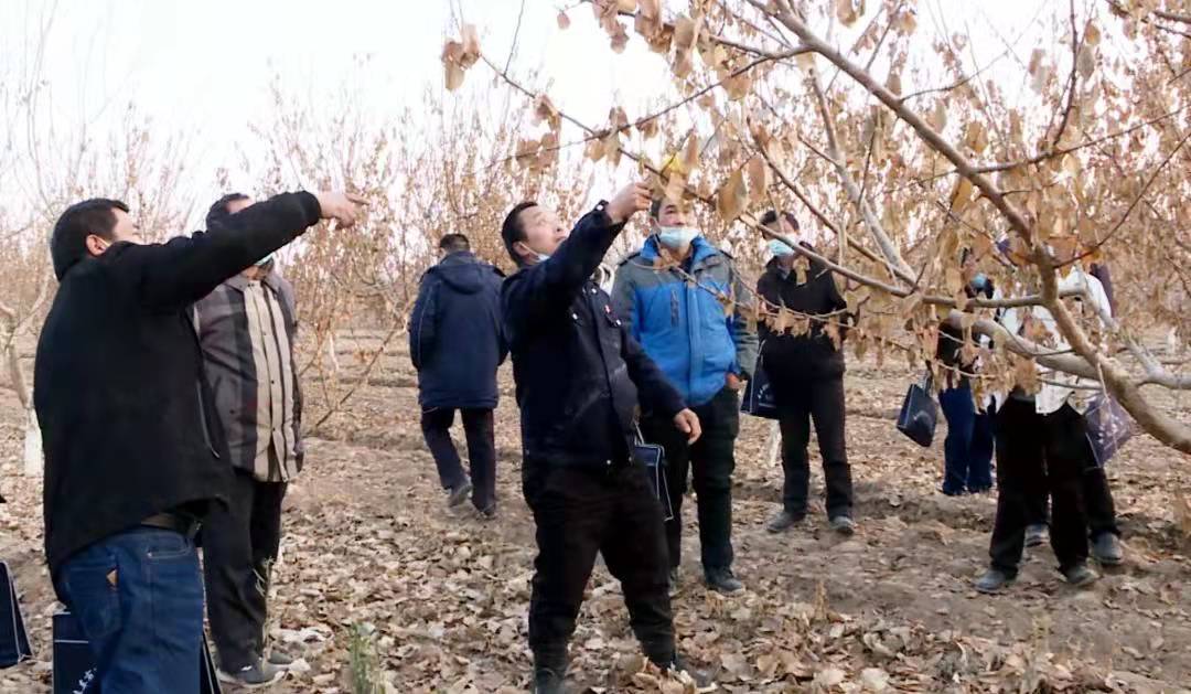 在農(nóng)田,專家們詳細(xì)講解了小白杏樹修剪的目的、意義、時間、步驟和方法,并根據(jù)不同樹的情況現(xiàn)場作了疏枝、短截等具體的修剪示范,科技特派員圍著果樹認(rèn)真觀看并記錄,虛心向?qū)<艺埥蹋€親自上前進行剪枝實踐。