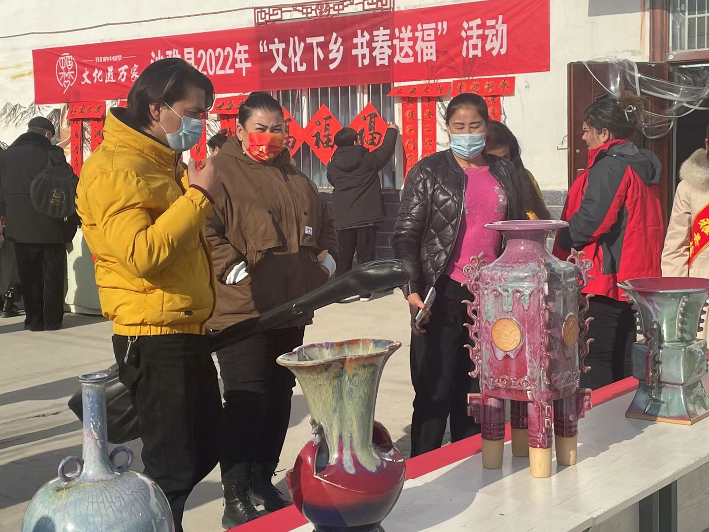 活動現場,人頭攢動,熱鬧非凡,大家滿懷崇拜的觀看書法老師們的精彩創作,書法老師們憑借專業的手法把新春的祝福化作一幅幅喜慶的對聯,并免費共贈送給在場廣大農民群眾,受到廣大農民群眾的熱烈歡迎和廣泛肯定。