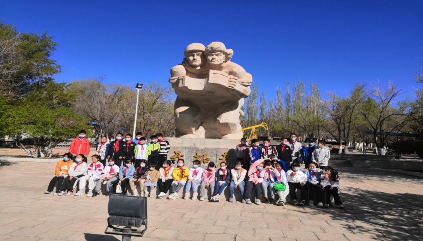 克拉瑪依老一輩石油人在惡劣的環境中求生存,在艱難困苦下謀發展,把一個“沒有水、沒有草,連鳥兒也不飛”的戈壁荒原,建設成了一個充滿歸屬感和家園感的宜居宜業宜游的城市。1955年7月6日,由八個民族36名工人組成的“青年鉆井隊”挺進新疆準噶爾盆地西北緣的黑油山。同年10月29日,第一口油井完鉆、噴出工業性油流,新中國第一個大油田宣告誕生……這些耳能詳熟的歷史讓師生和家長們似乎又回到了那個感天動地為祖國獻石油的年代,不由得心潮澎湃,感慨萬千。