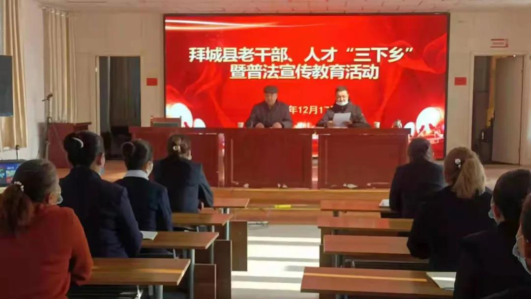 近日,拜城縣科協聯合縣委組織部組織農業農村局、司法局、中醫院等部門20余名離退休干部,赴鄉鎮、村(社區)開展黨的十九屆六中全會精神、法律、科技、醫療衛生等方面宣講咨詢,助力鄉村振興,掀起服務農村冬季大宣講、大培訓熱潮。